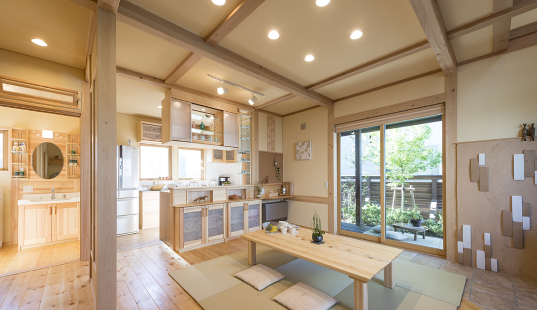 住まいのあらゆるところを合理的に見直すことで、高品質でありながらコストを抑えた、しかも機能的な住まいが誕生しました。日本の伝統技術も守り、受け継ぐ住まい、それが「郷の家」です。ただし、住む人が本当に必要とするものは何も省きません。家づくりの楽しみ、感動、心地よく住まうための性能。建ててから輝き続ける普遍の価値にこだわりました。